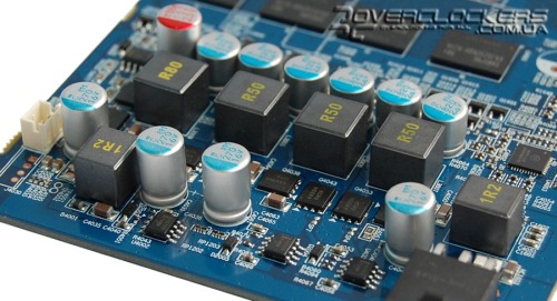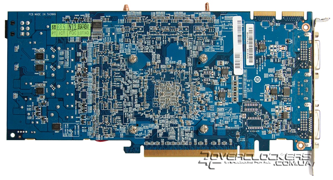 Дополнительного охлаждения в виде радиаторов для силовых элементов питающей цепи не предусмотрено. Но, несмотря на это, если сравнивать их с раскаленными мосфетами на картах Palit, то они все равно намного прохладнее. Это и неслучайно, ведь рассматриваемый графический ускоритель относится к серии Ultra Durable 2, а значит в нем используются исключительно твердотельные конденсаторы, дроссели в броневых сердечниках и полевые транзисторы с низким сопротивлением открытого канала.
