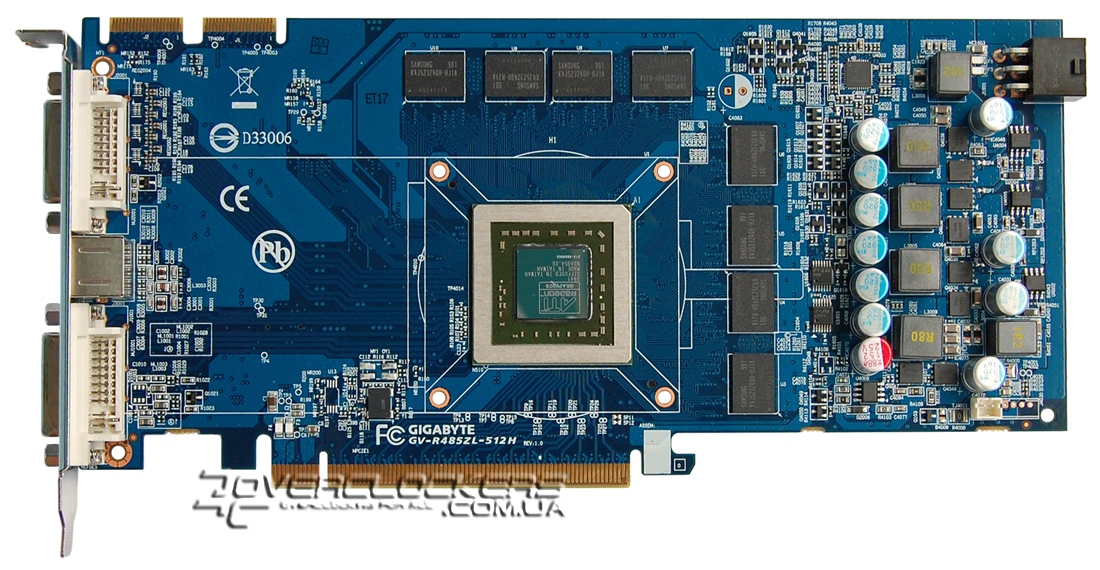 По частотным характеристикам Gigabyte GV-R485ZL-512H не отличается от референса. Ядро функционирует на 625 МГц (в 2D снижаясь до 500 МГц), а память на 1981 МГц.