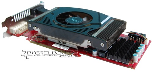 В простое частота ядра снижается до 500 МГц. Вентилятор в 2D-режиме не опускается ниже 50% от максимальных оборотов. В тесте «волосатым кубом» ATI Tool и в играх обороты кулера не поднимались выше 60%, и этого было вполне достаточно, чтобы удерживать температуру ядра в пределах 70 °C.