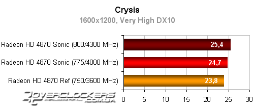 В высоком разрешении Crysis и этим видеокартам не по зубам. Версия Sonic быстрее обычной на 4%, разгон добавляет еще около 3%.