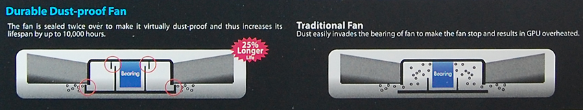 Система охлаждения кроме броского внешнего вида обладает и некоторыми практическими преимуществами относительно стандартного эталонного кулера, устанавливаемого на карты этой серии. По заявлению производителя специфичная форма крышки системы охлаждения помогает равномернее распределить воздушный поток, который обдувает всю поверхность платы.