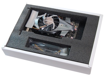 Видеоадаптер упакован в красочную коробку с откидной крышкой, под которой сквозь прозрачное окошко видно саму карту. Коробка испещрена надписями, информирующими об особенностях и преимуществах конструкции этой модели.