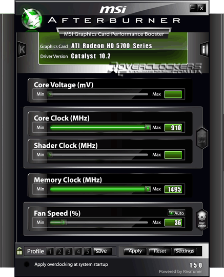 MSI Afterburner позволяет увеличивать частоты уже до 910 и 1495 МГц.