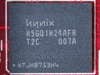 Распаяно четыре микросхемы памяти Hynix H5GQ1H24AFR T2C общим объемом 512 мегабайт.