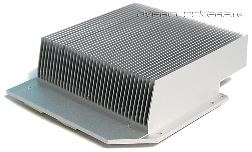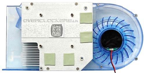Система охлаждения имеет простую конструкцию. Радиатор алюминиевый с толстым основанием, контактирует не только с ядром, но и с микросхемами памяти на лицевой стороне. Обдувается радиальным вентилятором с диаметром крыльчатки 70 мм.