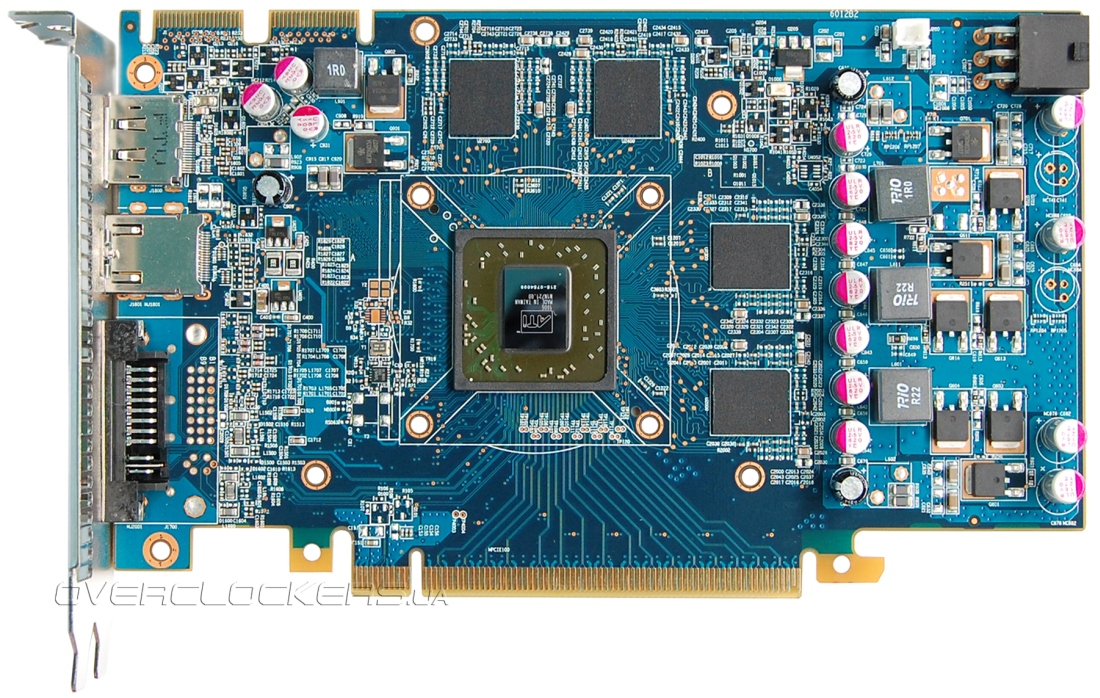 При прогоне демо-записи Ambush из Crysis Warhead Benchmarking Tool в разрешении 1920х1200 на максимальных настройках с AA4x температура ядра не превысила 74 °С, а обороты вентилятора составляли 42% от максимума. По уровню акустического комфорта видеокарта одна из лучших — не бесшумная, но вряд ли вы ее услышите на фоне стандартного боксового кулера процессора. Кроме того, горячий воздух не застаивается в системном блоке и выдувается за пределы корпуса. В общем, удачная во всех отношениях система охлаждения.