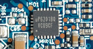 Двухфазная система питания GPU осталась без каких-либо модификаций, управление осуществляется ШИМ-контроллером uP6201BQ.