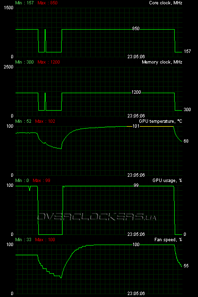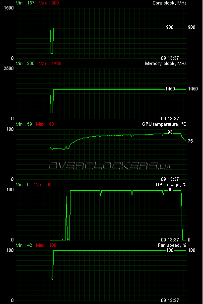 Система охлаждения едва справляется с нагрузкой в нынешнюю летнюю жару. Видеокарту надо вручную переводить в «нестандартный» режим с пониженным напряжением. Хотя и тут может быть не все так гладко. В частности, наш экземпляр не мог похвастать полной стабильностью при работе на 1,125 В, зависая даже в Crysis Warhead при 1920х1200, хотя проблем с Fur Rendering Benchmark как раз не возникало.