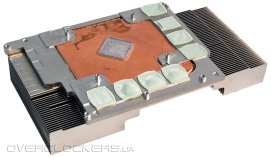 Конструкция состоит из массивного основания с медной вставкой и радиатора из 46 тонких алюминиевых пластин. Алюминиевая часть основания контактирует с микросхемами памяти через специальные термопрокладки. Обдув осуществляется 80-мм вентилятором (лопасти — 75 мм), который на фоне большого радиатора кажется крошечным.