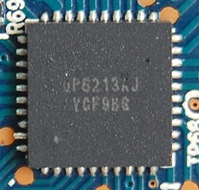 Четырехфазная система питания GPU построена на контроллере uP6213 с использованием двух «драйверов» uP6262. Софтвольтмод не поддерживается.