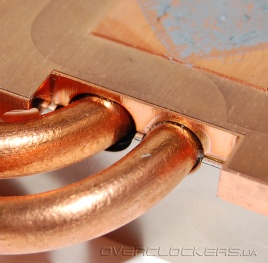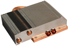 А вот такой вид имеет установленная система охлаждения без верхнего кожуха. В месте контакта с микросхемами системы питания есть небольшая тепловая трубка.