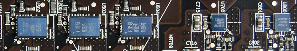 Благодаря возможности программного управления питающего напряжения на GPU нам удалось достичь стабильности на частоте в 990 МГц при напряжении 1,26 В.