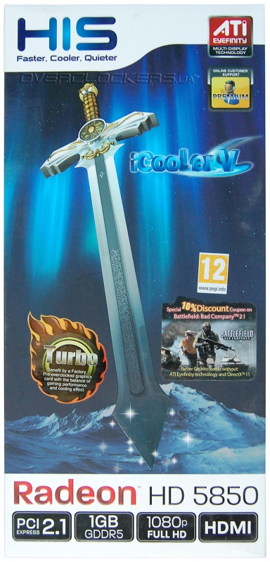 Младший HIS HD 5850 iCooler V, работающий на стандартных частотах, кроме этих самых частот ничем и не отличается от Turbo-версии. Неплохая недорогая карта. Немного шумновата, но это легко решается единоразовой настройкой профиля управления вентилятором в MSI Afterburner. Разгон тоже очень скромный.