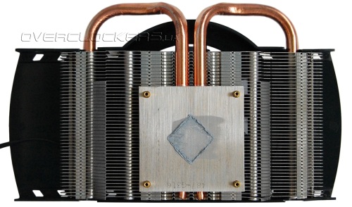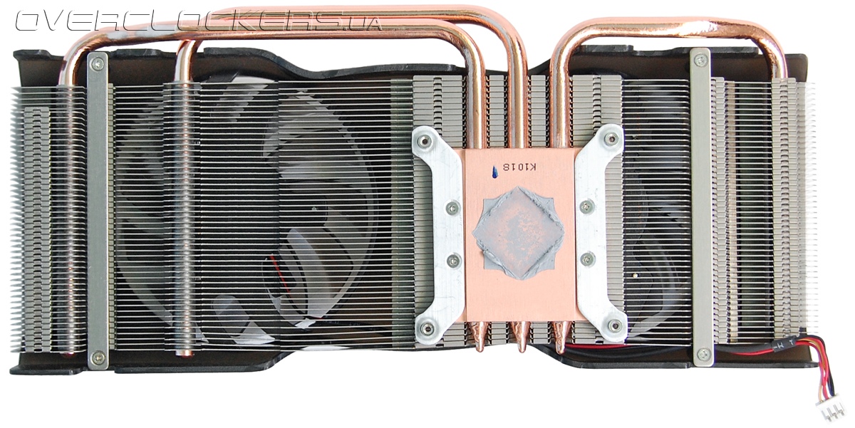У системы охлаждения осуществляется прямой контакт тепловых трубок с поверхностью кристалла ядра. Само название DirectCU намекает на данную технологию H.D.T. (Heatpipe Direct Touch). Трубки уложены в тщательно подогнанные под их форму желобки. Радиатор включает 32 тонких алюминиевых пластины.