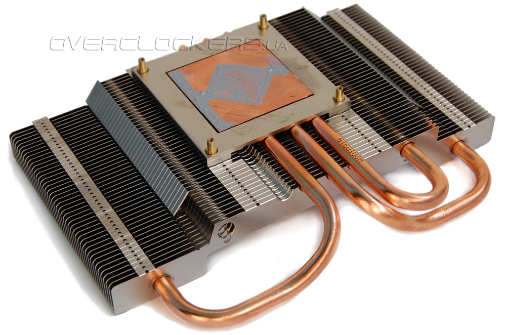 А вот такой вид имеет установленная система охлаждения без верхнего кожуха. В месте контакта с микросхемами системы питания есть небольшая тепловая трубка.