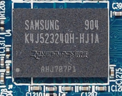 На плате распаяны чипы памяти GDDR3 производства Samsung K4J52324QH-HJ1A со временем доступа 1,0 нс.