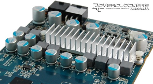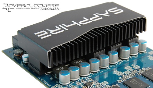 Радиатор на силовых элементах подсистемы питания на фоне большого ребристого радиатора у обычной Vapor-X HD 4870 кажется довольно скромным. Но зато на этой карте он обдувается направленным воздушным потоком, создаваемым крупным вентилятором.