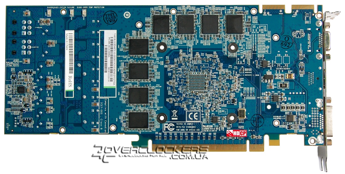 На плате применяются уже более емкие 128 МБ чипы GDDR5 производства Qimonda с маркировкой IDGV1G-05A1F1C-40X, которые рассчитаны на 4 ГГц.