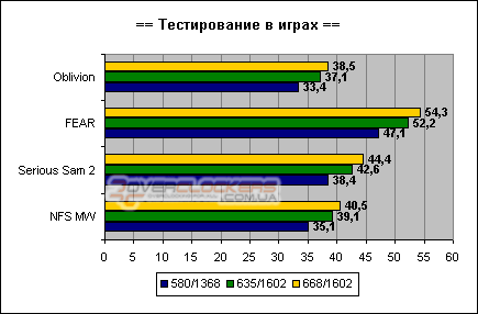 Пару месяцев я не жаловался жизни, играя в самые последние игры типа F.E.A.R., NFS: Most Wanted, Oblivion и Serious Sam 2. Благо X1600 XT позволяла мне выставлять максимальные настройки при 1024x768 в каждой из этих игр.