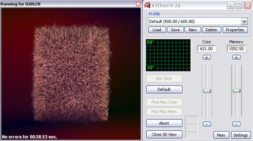 Карта основана на графическом чипе RV570, как и X1950 PRO. Чип выполнен 0,08 мкм технологии, состоит из 330 млн. транзисторов и включает 36 пиксельных процессоров, 8 вершинных и 12 текстурных блоков, шина доступа к памяти 256 бит. Чип работает на частоте 500 МГц. На карте установлено 256 Мб памяти GDDR3, работающей на частоте 1188 МГц. Частоты старшей модели X1950 PRO, этого же производителя, составляют 580/1400 МГц. Разгон карты осуществлялся с помощью RivaTuner 2.0 FR, проверка на стабильность производилась с помощью ATITool. Карта без проблем заработала на частоте чипа 621 МГц, а память стабильно работала на 1552 МГц, прирост в процентном выражении составил 24% по чипу и 30% по памяти. Более высокие частоты приводили к появлению артефактов. В результате видеокарта обогнала по частотам старшую модель X1950 PRO.