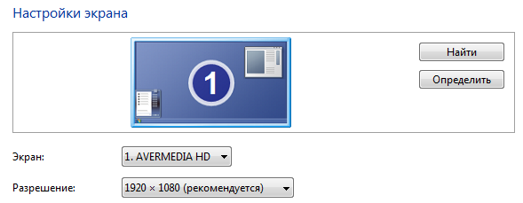 После подключения в списке мониторов пропадет основной монитор, а вместо него появится устройство AVERMEDIA HD, таким образом, по сути, система «видит» карту захвата как обычный монитор.