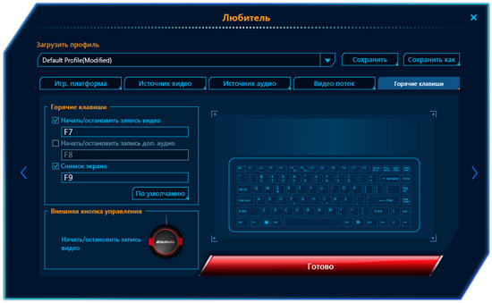Ну и последнее, есть возможность назначить горячие клавиши для старта записи или снятия скриншотов.