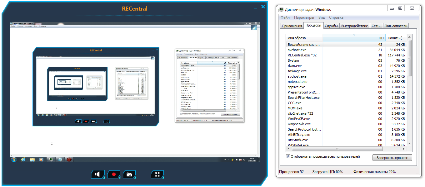 А что же с нагрузкой на процессор? На нашей тестовой системе ее попросту нет. Ресурсы, «отъедаемые» у ЦП программой RECentral, не превышают 1—2%, в общем, все в пределах погрешности. Было решено пойти чуть дальше и собрать намного более слабую конфигурацию, дабы проверить нагрузку на ней. В ее состав вошли: