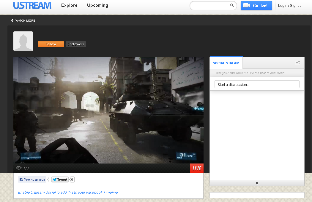 С трансляцией, как говорилось выше, тоже не возникло никаких проблем — ниже вы можете видеть скриншот сервиса Ustream трансляцией все того же Battlefield 3.