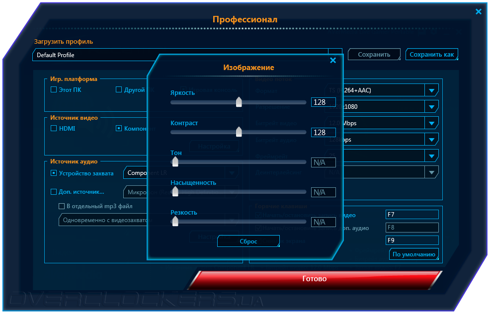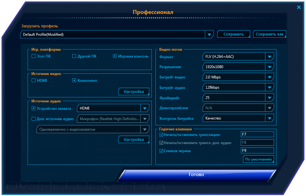 Как видим, разрешение ограничено значением 1920x1080, причем если при пропускании сигнала и доступен режим 60p, максимальное значение при записи лимитируется 30p, как это было и в Live Gamer HD. Обладателям же мониторов с разрешением более Full HD не стоит забывать, что с такими разрешениями устройство не сможет работать даже в качестве «моста» для видеосигнала.