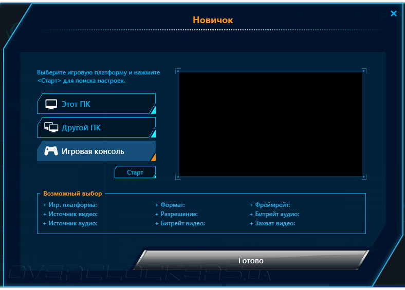 При выборе режима «Новичок» ПО само за пользователя решит какие лучше параметры использовать, потребуется указать лишь источник и правильно подключить рекордер.