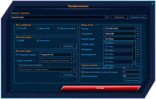 Также из обновок можно заметить увеличенный до 60 Мбит/с битрейт кодируемого видео. Вряд ли такое высокое значение будет иметь практическую пользу, однако это говорит о высокой мощности установленного кодирующего процессора, если, конечно, на практике эти заявления подтвердятся. Напомним, что для Live Gamer HD эта характеристика ограничена значением 20 Мбит/с.