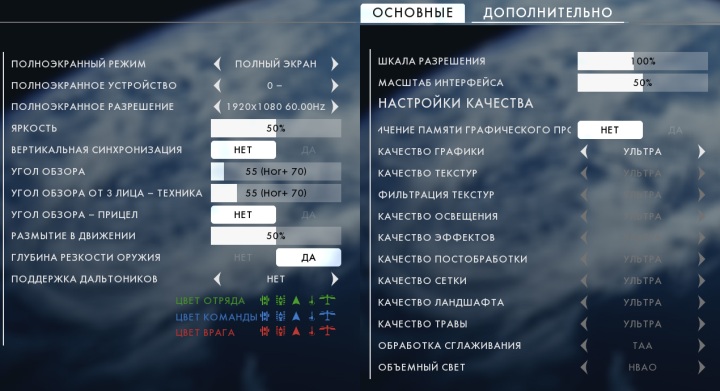 Небольшой совет по сглаживанию. Battlefield 1 поддерживает сглаживание TAA и FXAA. Первый вариант хорошо сглаживает ступенчатые лесенки на краях объектов, но снижает четкость картинки. Если вы испытываете некоторый дискомфорт при Ultra-качестве, просто выберите FXAA или откажитесь от любого сглаживания и задействуйте масштабирование, используя начальный рендеринг в более высоком разрешении (параметр «шкала разрешения»). Даже на мониторе 1920x1080 можно использовать рабочее разрешение 2560x1440, если, конечно, это позволяет производительность вашей видеокарты.