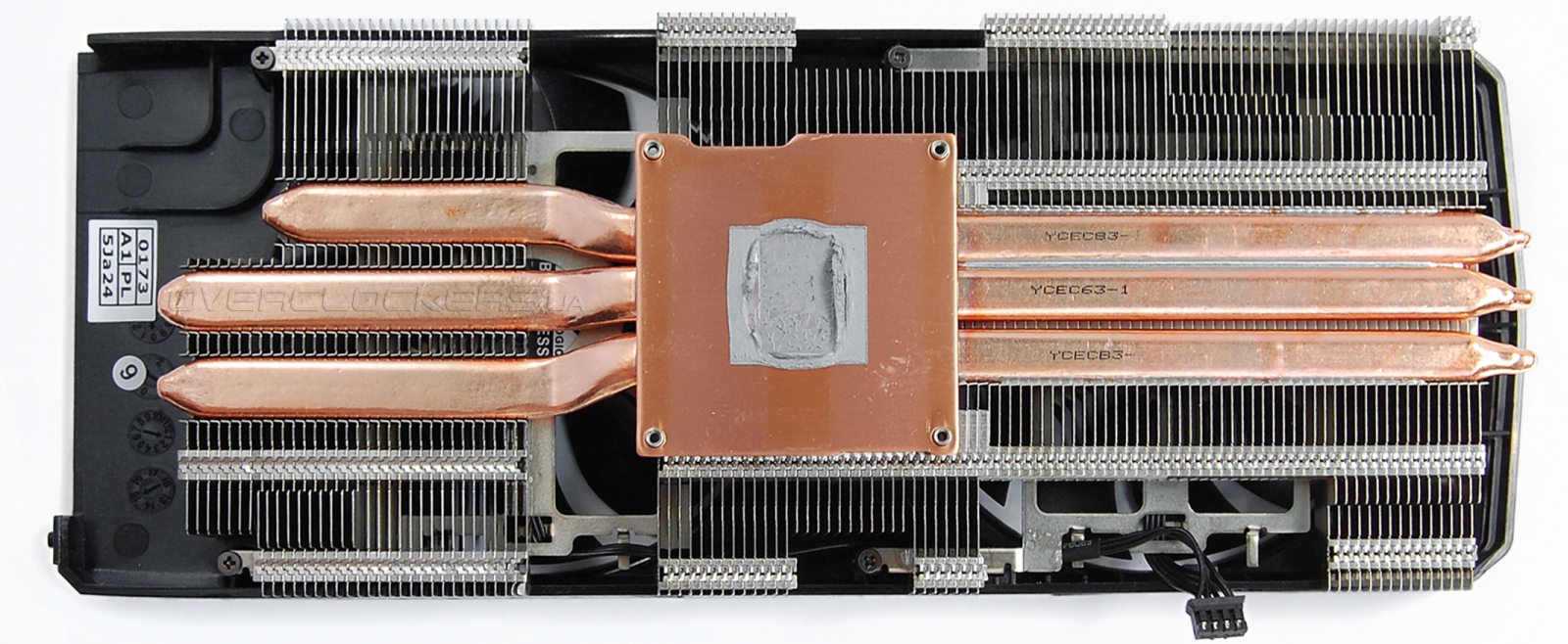 Система охлаждения ACX 2.0+ у данной видеокарты напоминает старшие модели, но с некоторыми отличиями. Количество тепловых трубок уменьшено до трех, хотя они большого диаметра в 8 мм. Трубки и медное основание, контактирующее с поверхностью графического ядра, обходятся без никелированного покрытия.