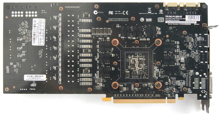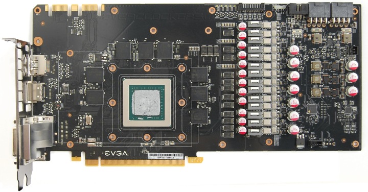 Широкая печатная плата полностью открыта, хотя в продуктах премиум-уровня мы привыкли видеть накрывающую пластину. В данном случае ее придется докупать отдельно. Совместимый EVGA GTX 980 Classified Backplate имеет код 100-BP-2987-B9.