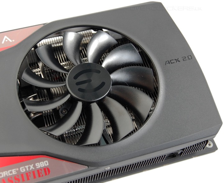 Видеокарта Classified внешне напоминает младших товарищей по серии, в том числе GeForce GTX 980 Superclocked ACX 2.0 — одинаковый черный кожух, два вентилятора.