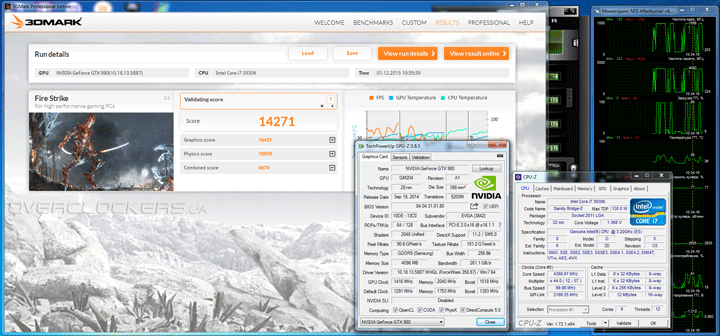 Повышение напряжения может обеспечить еще более внушительные результаты. Достигнуть этого можно и программными средствами при помощи специальной утилиты для повышения напряжений и модифицированного BIOS от именитого оверклокера K|ngp|n. Естественно, все модификации выполняются на ваш страх и риск. Без четкого осознания целей и задач к подобным средствам лучше не прибегать. Мы при использовании утилиты столкнулись с тем, что даже после небольшого повышения напряжения резко росла температура и быстро включался троттлинг, поэтому видеокарта, радовавшая частотой 1,6 ГГц в первой половине теста Fire Strike, потом быстро снижала частоту до очень низких значений.