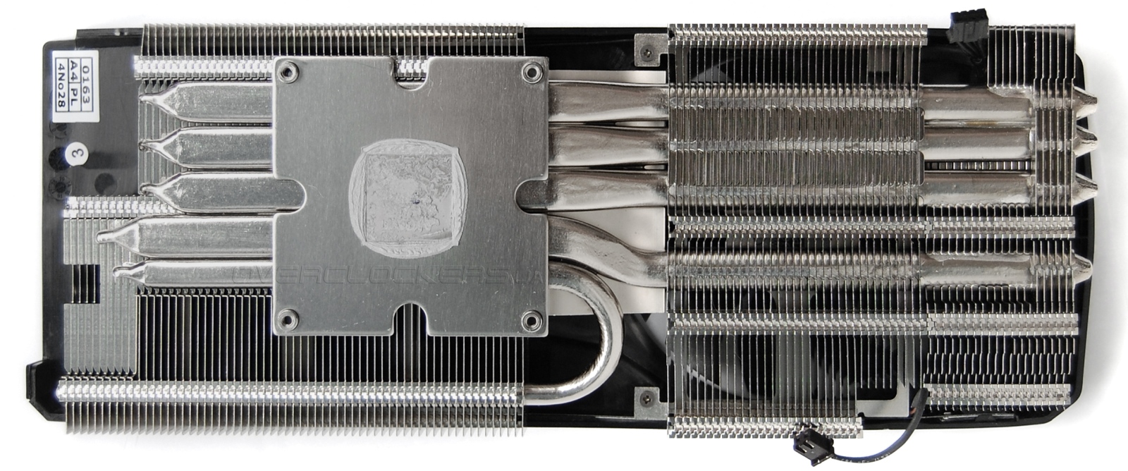 На боковую часть кожуха нанесен логотип компании и название карты. Разъемы питания расположены в углу, как и положено. Сама их конфигурация стандартная — две розетки по шесть контактов.