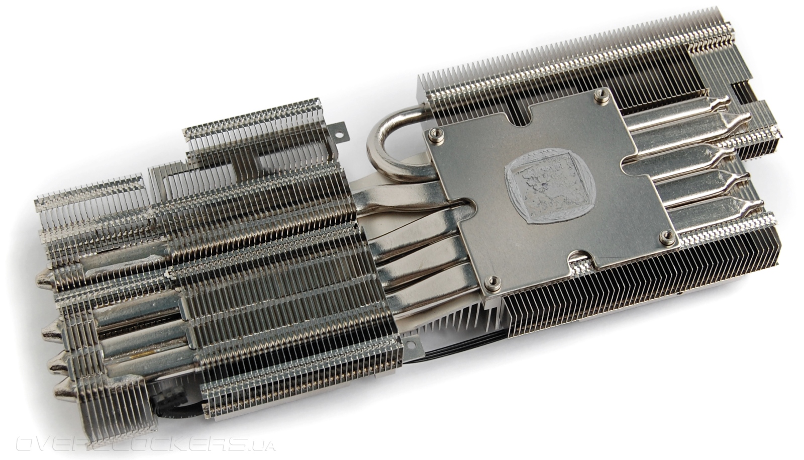 Радиатор набран из двух основных секций. Одна секция накрывает основание и трубки, вторая «висит» чисто на трубках. При этом в месте небольшого изгиба трубок есть дополнительный цельный радиатор. То есть по максимуму используется весь доступный объем.