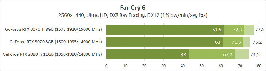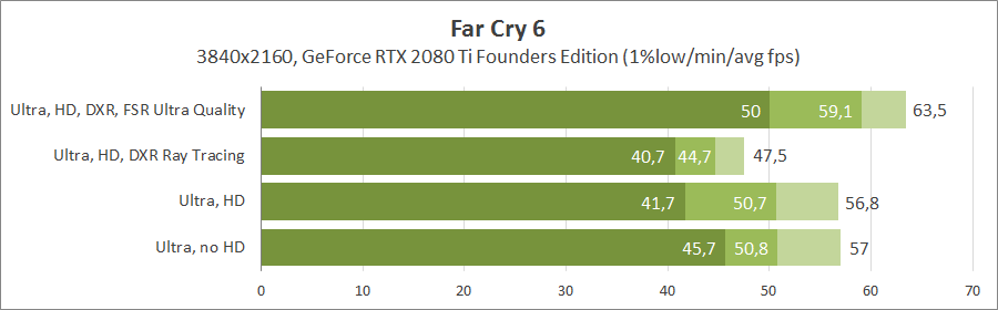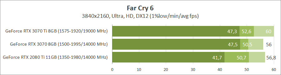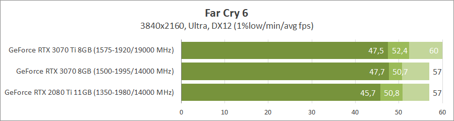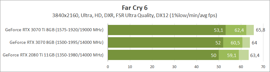 Дополним приведенные данные наглядной демонстрацией Far Cry 6 на GeForce RTX 3070 Ti (4K без HD-текстур и трассировки):