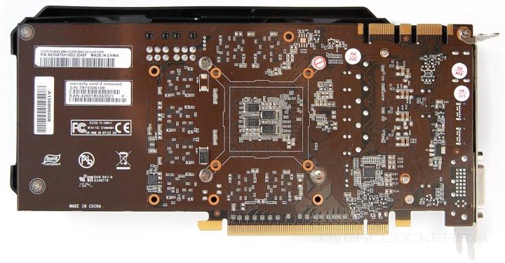 Детально изучить печатную плату с радиатором трудно. Но после демонтажа VRM-радиатора можно четко идентифицировать четыре фазы в системе питания GPU и две фазы — памяти GDDR5.