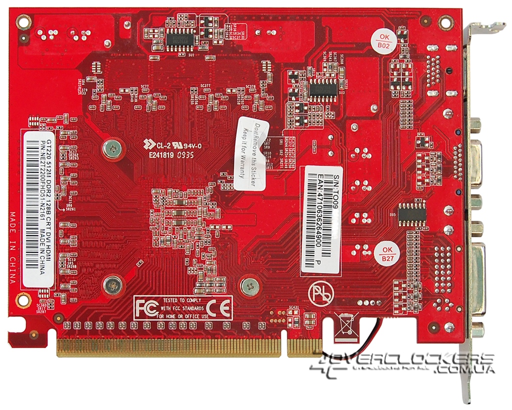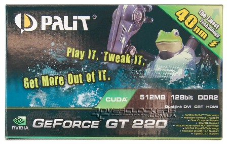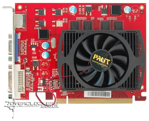 Palit GeForce GT 220 512MB DDR2 выполнен на красном текстолите и по дизайну отличается от референса. На заднюю панель выведены DVI, D-Sub и HDMI.