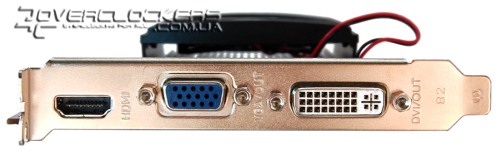 Видеокарта очень компактна, ее длина не превышает 15 см. Система охлаждения тоже отличается небольшими размерами, но оснащена довольно большим (как для габаритов самого кулера) вентилятором. Вся эта конструкция занимает объем чуть более одного слота, так что в разъем под видеокартой вставить еще какую-нибудь плату не получится, хоть визуально кулер и кажется однослотовым.