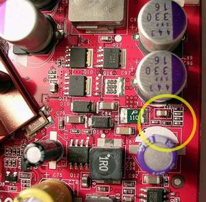 Измеряем его сопротивление - должно быть примерно 420 Ом. Для того чтобы увеличить напряжение, необходимо снизить сопротивление резистора, закрасив его карандашом. Так, снижение сопротивления с 420 Ом до 370 Ом, увеличит напряжение на 0,1 В, другими словами, уменьшение сопротивления на 10 Ом поднимает напряжение на 0,02 В.