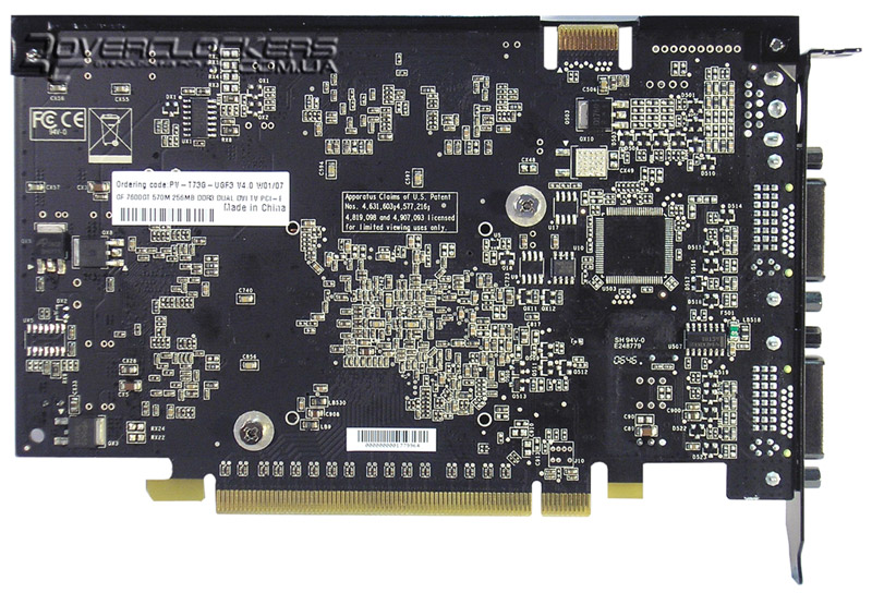 Из-за укороченного дизайна платы (это, наверное, самая короткая видеокарта на GeForce 7600GT) часть силовой обвязки, отвечающая за питание карты, была перенесена на сторону размещения периферийных разъемов.