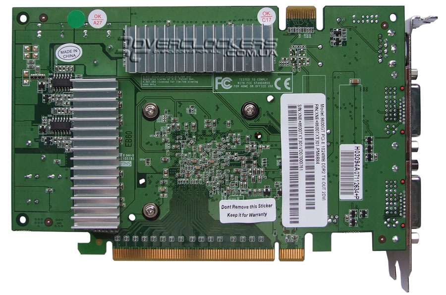 Плата зеленого цвета с традиционным черным кулером, характерным для младших моделей видеокарт этого производителя. С обратной стороны платы микросхемы памяти закрыты алюминиевыми радиаторами.