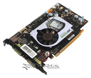 Плата выполнена в суровом черном цвете с зелеными DVI-коннекторами. Сам дизайн печатной платы, а также система охлаждения являются точной копией, применяемой на видеокартах GeForce 7600GT. Кулер представляет собой небольшой алюминиевый радиатор с вентилятором по середине. Вся система занимает один слот. Кулер прижимается к плате двумя болтами с пружинами. По ощущениям давление довольно сильное, но неравномерное. На чипах памяти нет никаких радиаторов, хотя они неплохо обдуваются потоками воздуха из радиатора.