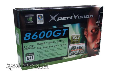 Для сравнения были взяты две видеокарты GeForce 8600GT с разным объемом памяти от XpertVision. Данное поколение видеоадаптеров уже неоднократно тестировалось на нашем сайте, поэтому просто кратко отмечу основные особенности данных видеоадаптеров. Они базируются на графическом ядре G84, состоящем из 32 универсальных потоковых процессоров и 16 текстурных блоков. Ядро работает на частоте 540 МГц, его шейдерный домен на 1180 МГц. Разрядность шины доступа к памяти 128 бит. Рекомендованная частота памяти для рассматриваемых моделей 1400 МГц. Карты поддерживают SLI и оснащаются двойным DVI.