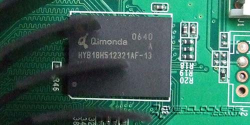 На плате распаяны чипы памяти Qimonda со временем доступа 1,3 нс.