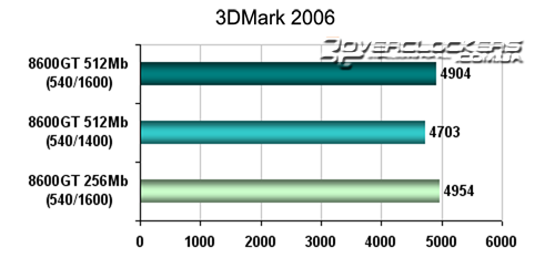 Первым тестом, по традиции, выступит синтетический пакет 3DMark. В данном сравнении мы ограничимся лишь 2006 версией. Результаты тестирования отображены ниже.