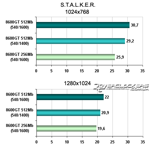 В качестве последнего теста использовалась игра S.T.A.L.K.E.R.. Не смотря на множество игр выпущенных в этом году, пока по реализму графики никто не смог превзойти данную игру. Возможно, Crysis изменит ситуацию, но пока именно детище компании GSC обладает наиболее естественной и реалистичной графикой.